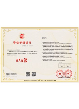 先后通過ISO9001國際質(zhì)量體系認(rèn)證、ISO14001國際環(huán)境體系認(rèn)證、OHSAS18001國際職業(yè)健康安全體系認(rèn)證及315:9002國際信用管理體系認(rèn)證、CE認(rèn)證以及取得國家知識產(chǎn)權(quán)多項實用型專利。